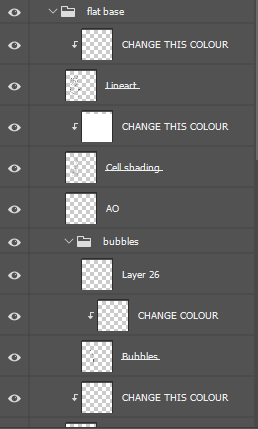 To change the colour of the lineart and shading easily just fill in the layers marked "CHANGE THIS COLOUR" with any colour of your choice